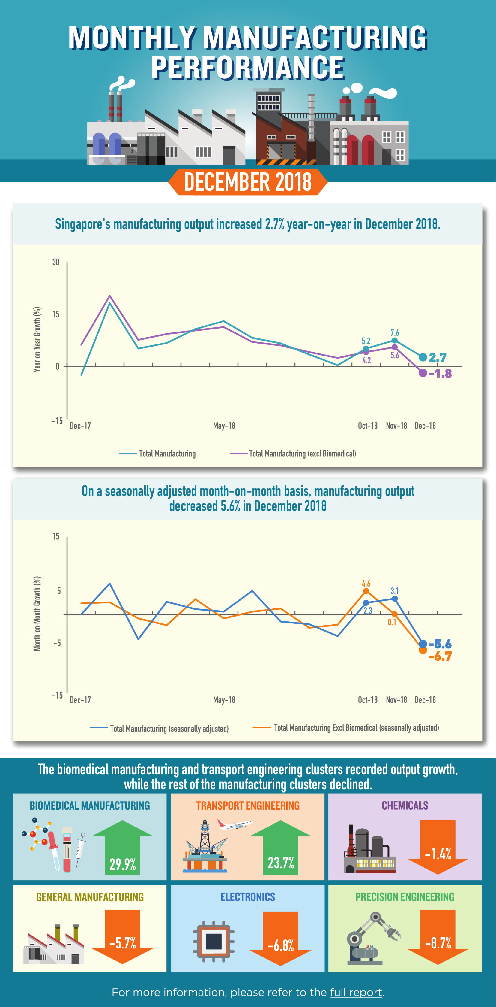Overall industrial output for 2018, however, rose 7.2 per cent from the year before, said the Economic Development Board (EDB) on Friday (Jan 25).