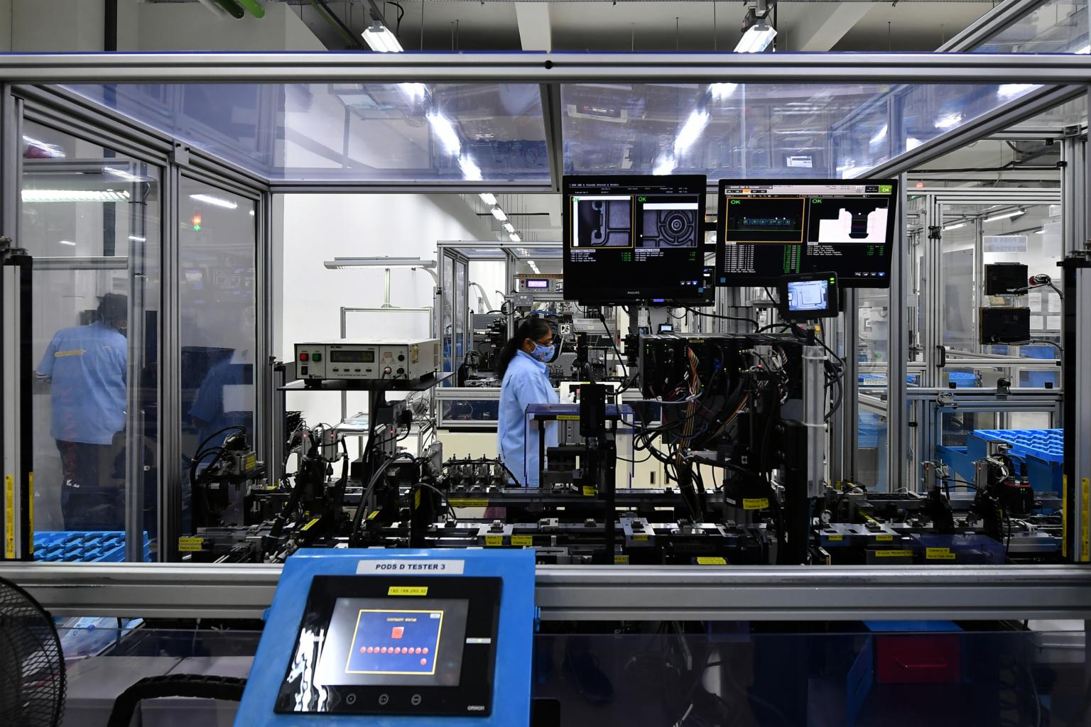 SINGAPORE - Singapore's manufacturing output surged last month on robust demand for semiconductors and related equipment, pharmaceuticals and medical devices, data released on Friday (March 26) by the Economic Development Board (EDB) show.