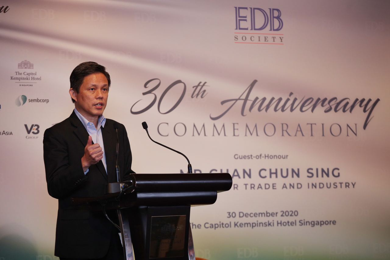 Mr Chan was speaking at The EDB Society's 30th anniversary commemoration event, which was held in a hybrid format at the Capitol Kempinski Hotel, ahead of a closed-door dialogue with the society's alumni.