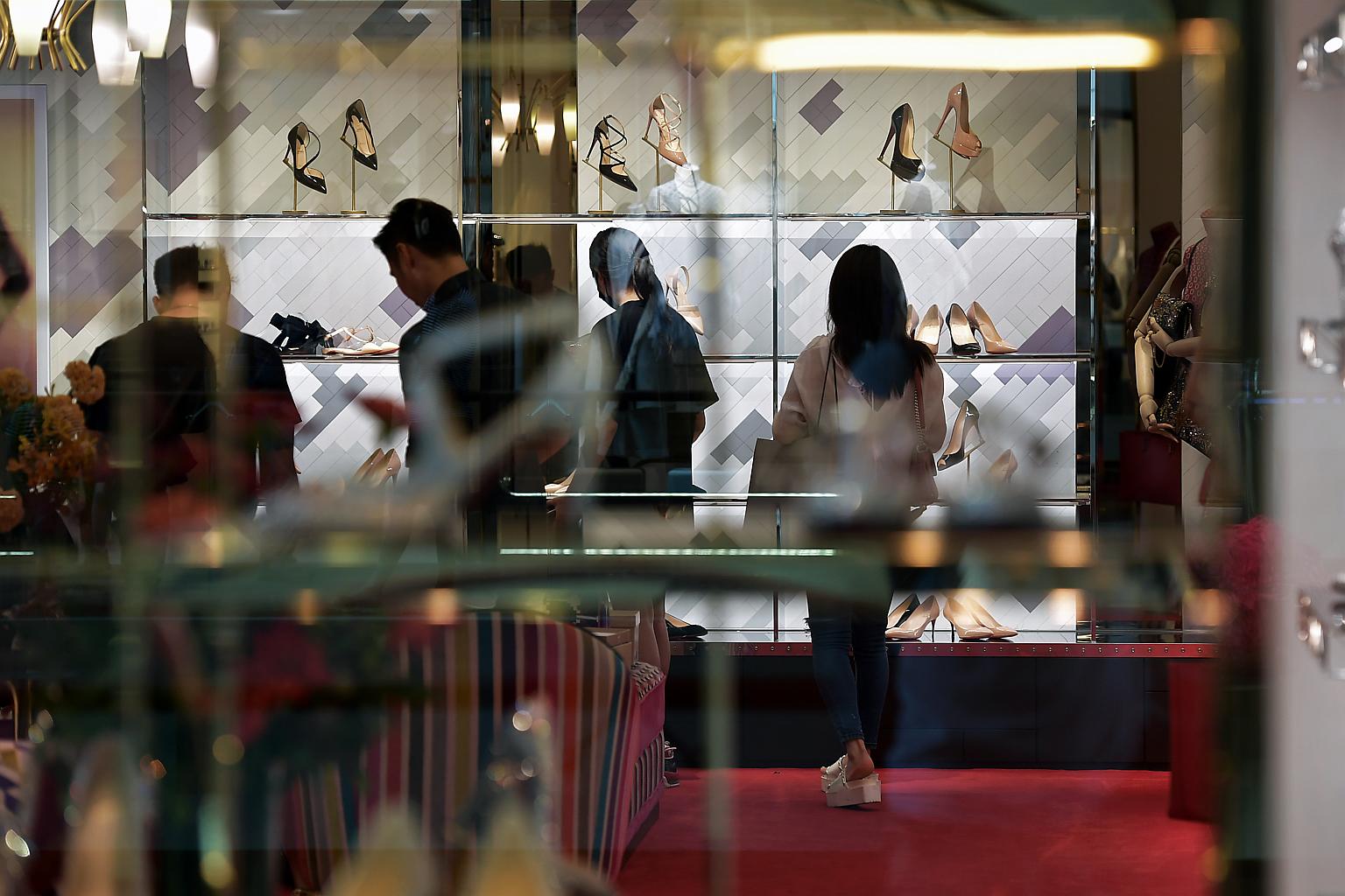 Shoppers at looking at shoes are a store in The Shoppes at Marina Bay Sands, on Feb 14 2018.