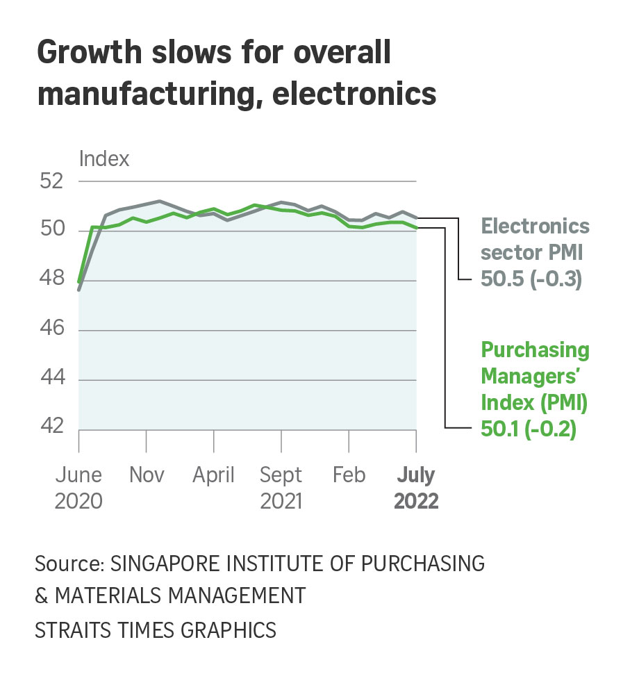 While the latest figure marks 25 consecutive months of expansion for the sector, it signals that the second half of the year is starting on a slightly dour outlook for manufacturers, said the Singapore Institute of Purchasing and Materials Management (SIPMM), which publishes the index.