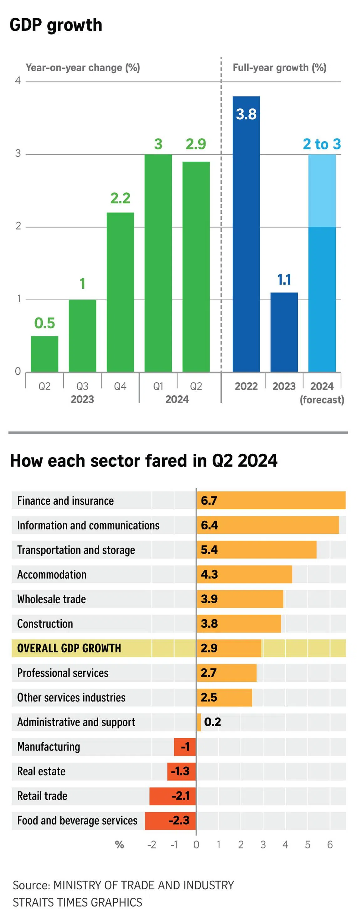 For the first half of 2024, Singapore’s gross domestic product (GDP) growth averaged 3 per cent year on year.