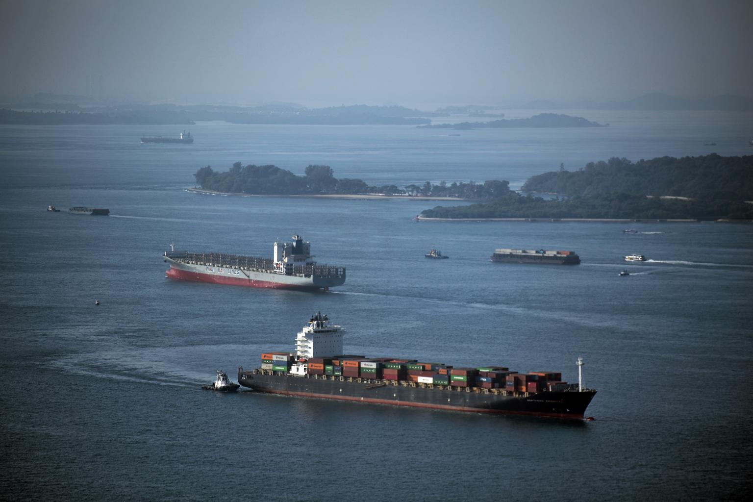 File photo of container ships in the south of Singapore.