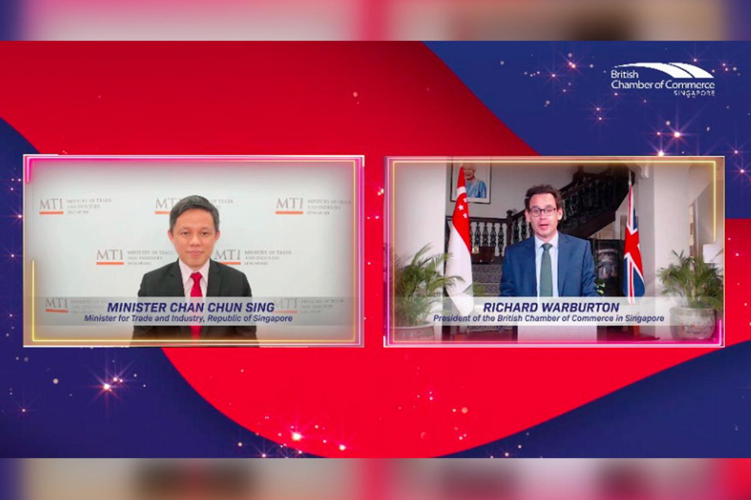 Trade and Industry Minister Chan Chun Sing during the British Chamber of Commerce Singapore's virtual awards ceremony on Oct 29, 2020.
