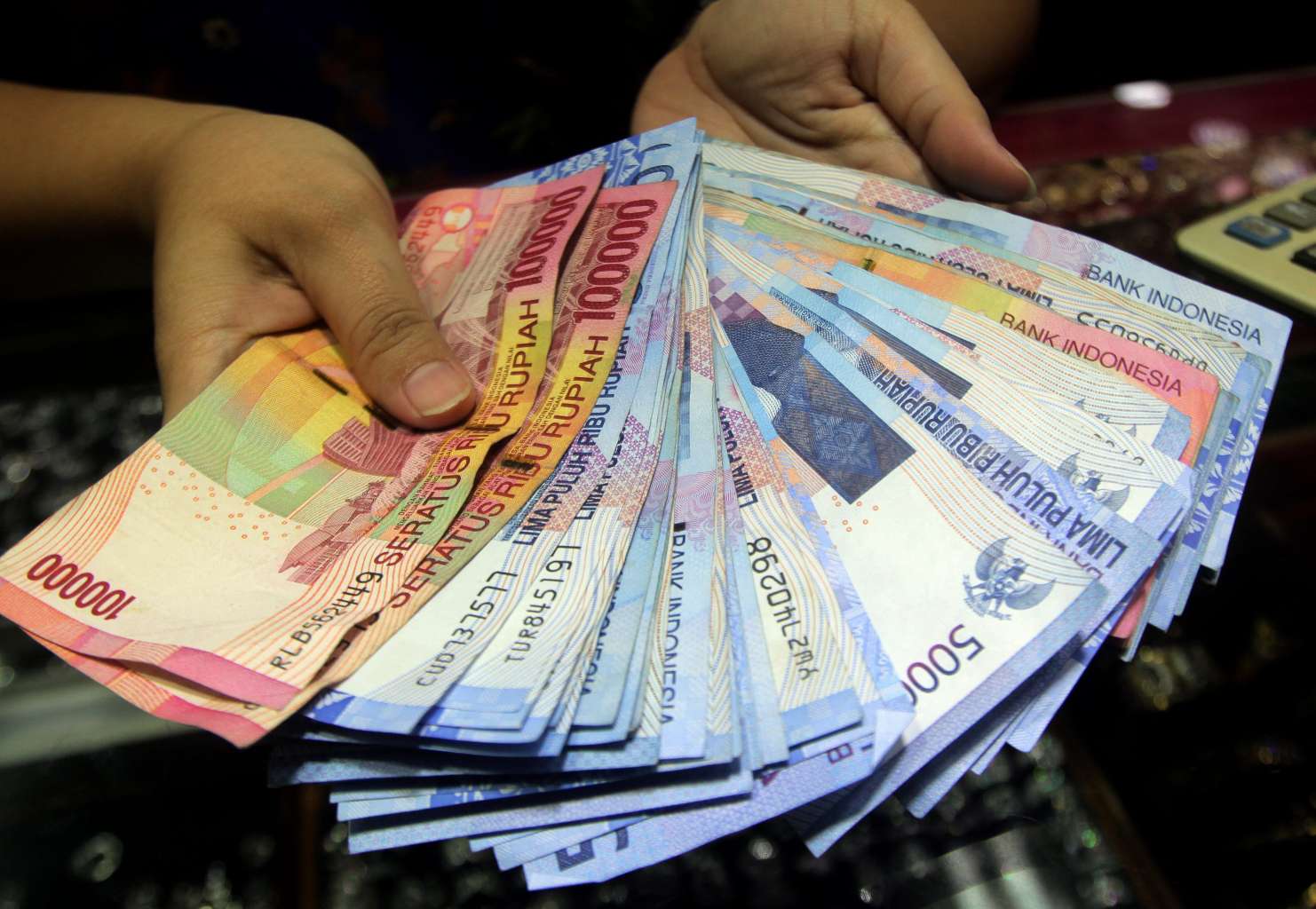 An Indonesian vendor holding Rupiah notes at a market in Jakarta on Dec 10.