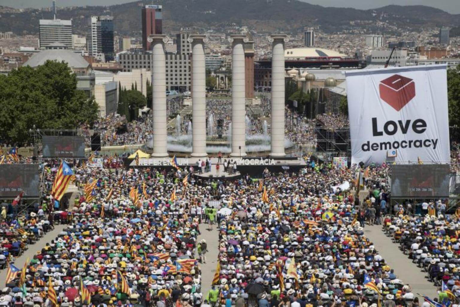 People attend a demonstration to support Catalonia's plans for an independence referendum, on June 11, 2017.