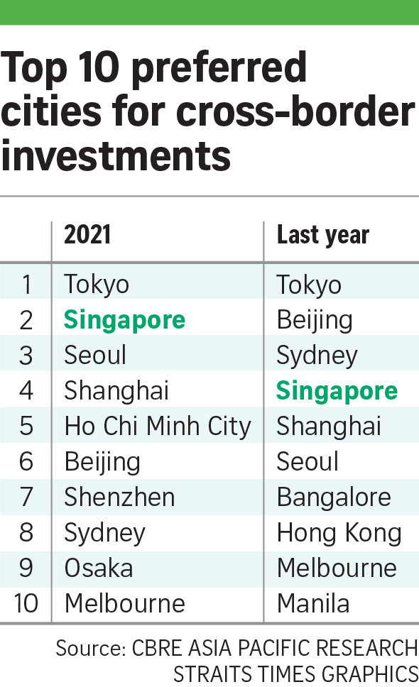 Singapore is the second most preferred city in Asia-Pacific for cross-border investments this year, a study noted yesterday.