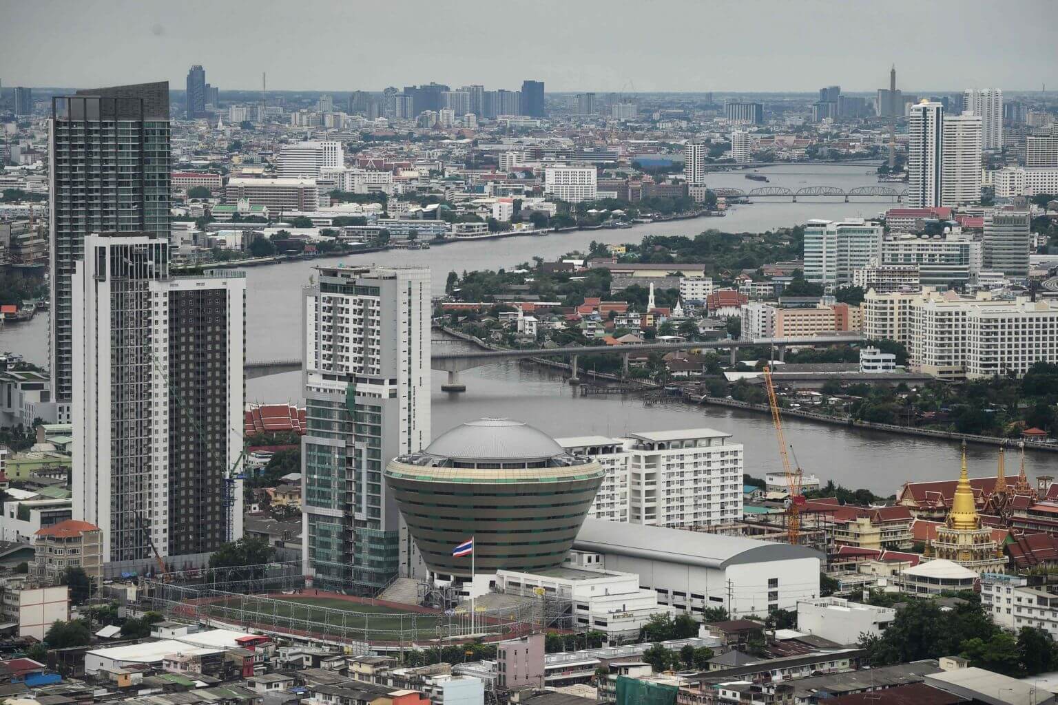 Buildings and temples along the Chao Praya River in Bangkok, on Aug 6, 2019.