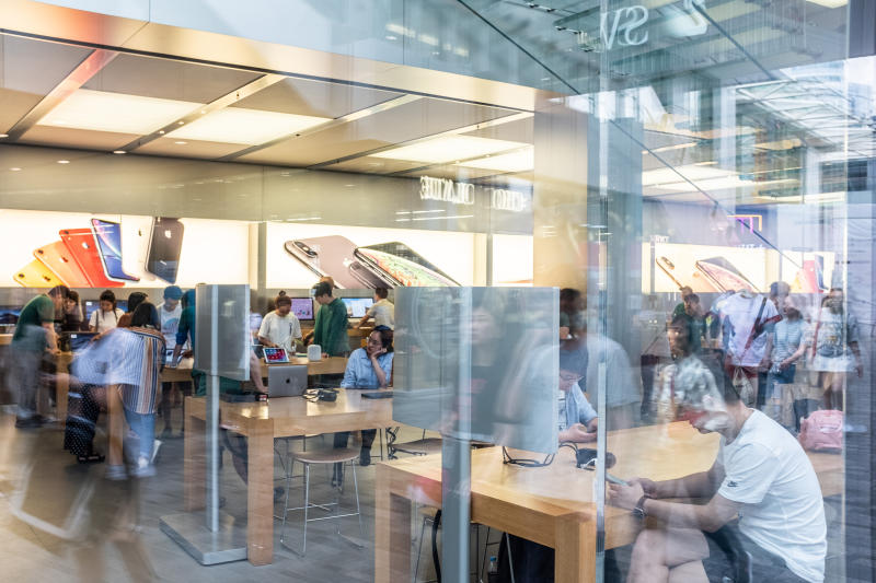An Apple store in Beijing on May 17, 2019. Apple makes its iPhones in China but also sells a large number of the gadgets there. China’s convenience and its vast and growing consumer market make it difficult for many businesses to abandon China entirely, but US tariffs and growing tensions between Washington and Beijing are forcing many companies to rethink their reliance.