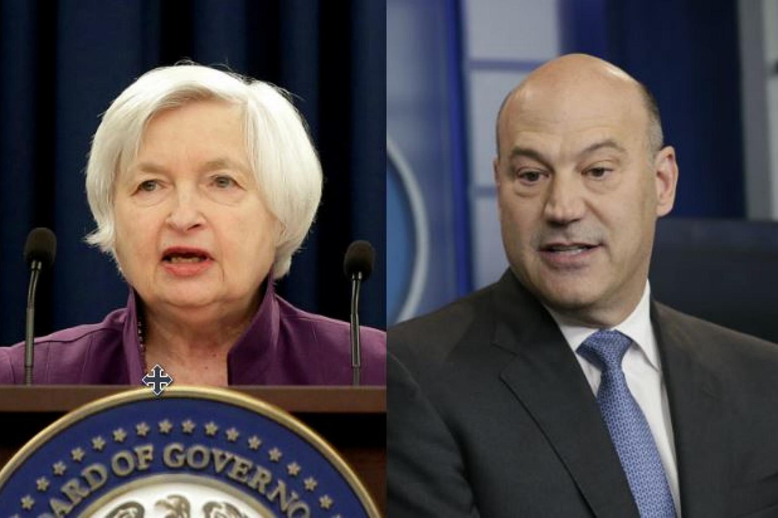Current Fed chair Janet Yellen and US President Donald Trump's economic adviser Gary Cohn.
