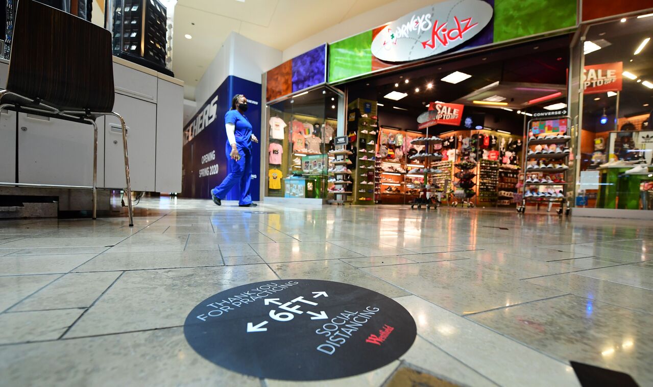A woman walks alone through the Westfield Santa Anita shopping mall on June 12, 2020 in Arcadia, California.