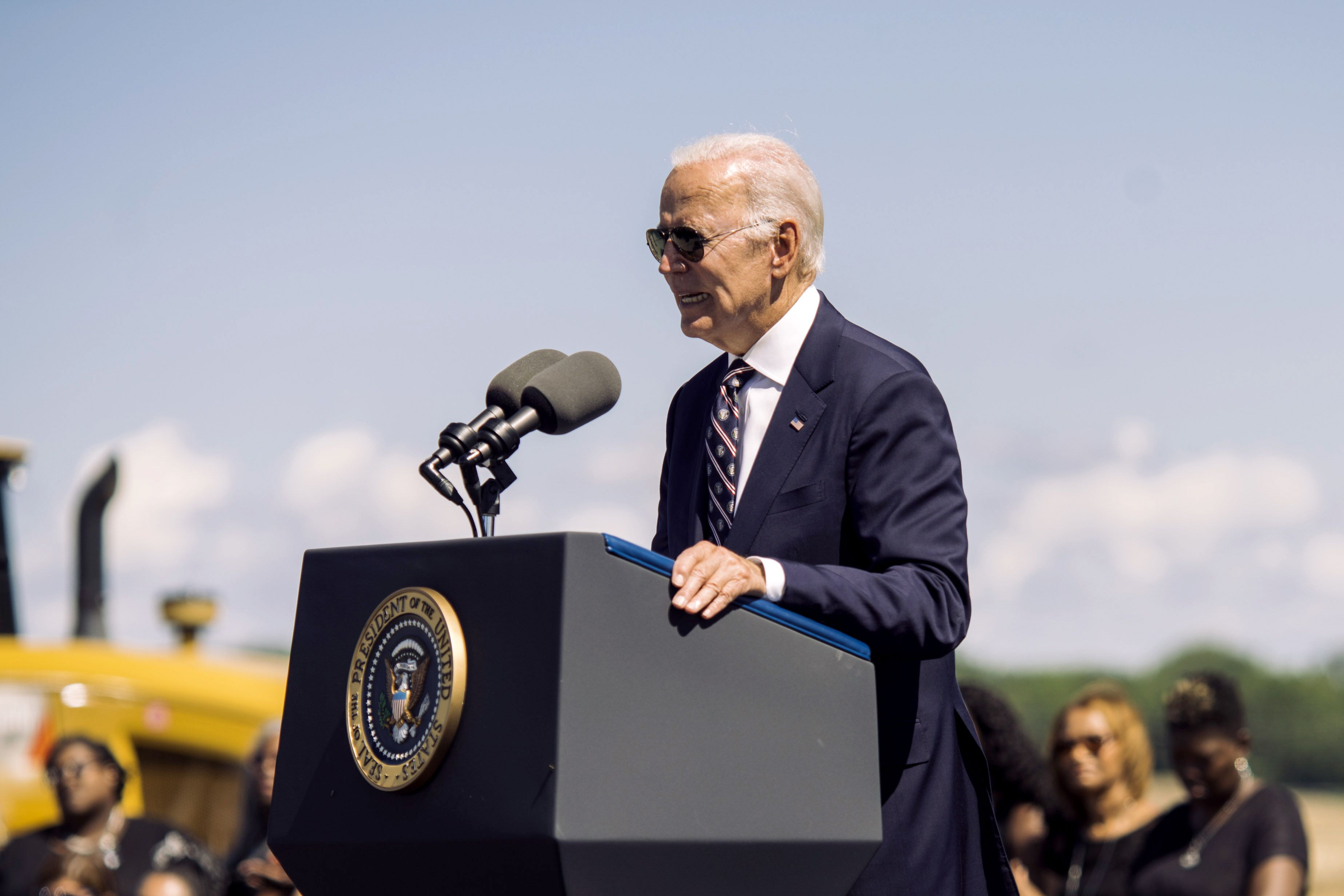 US President Joe Biden speaks during the groundbreaking of the new Intel semiconductor plant on Sept 9 in Johnstown, Ohio.