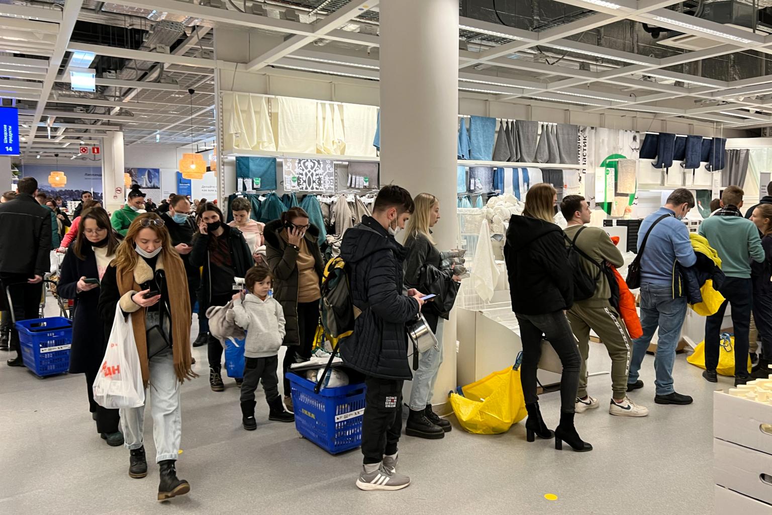 Customers queue in IKEA store in Moscow on March 3, 2022.