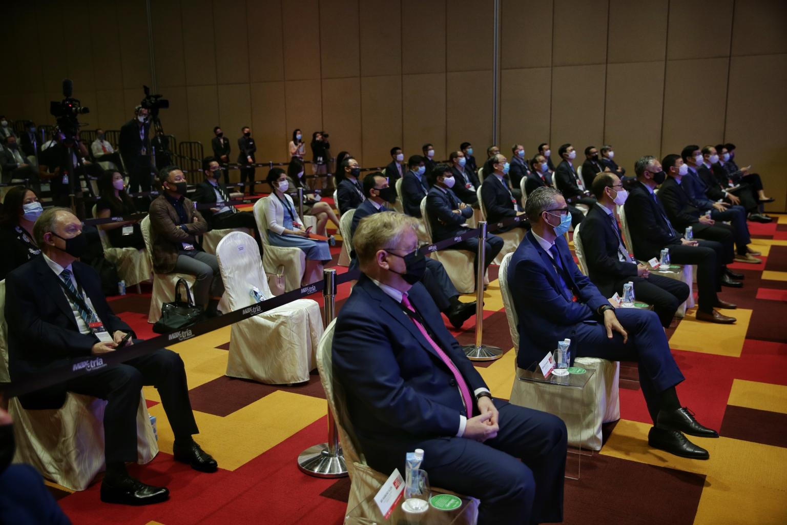 Attendees practising safe distancing during the Industrial Transformation Asia-Pacific opening ceremony at Singapore Expo & Max Atria, on Oct 20, 2020.