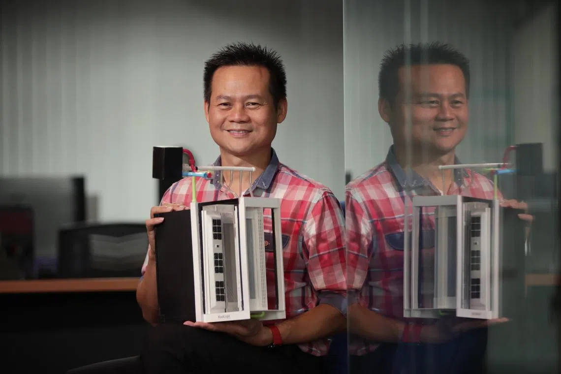 KoolLogix’s chief executive Cheong Chun Keat with the KoolLogix heat removal solution model.