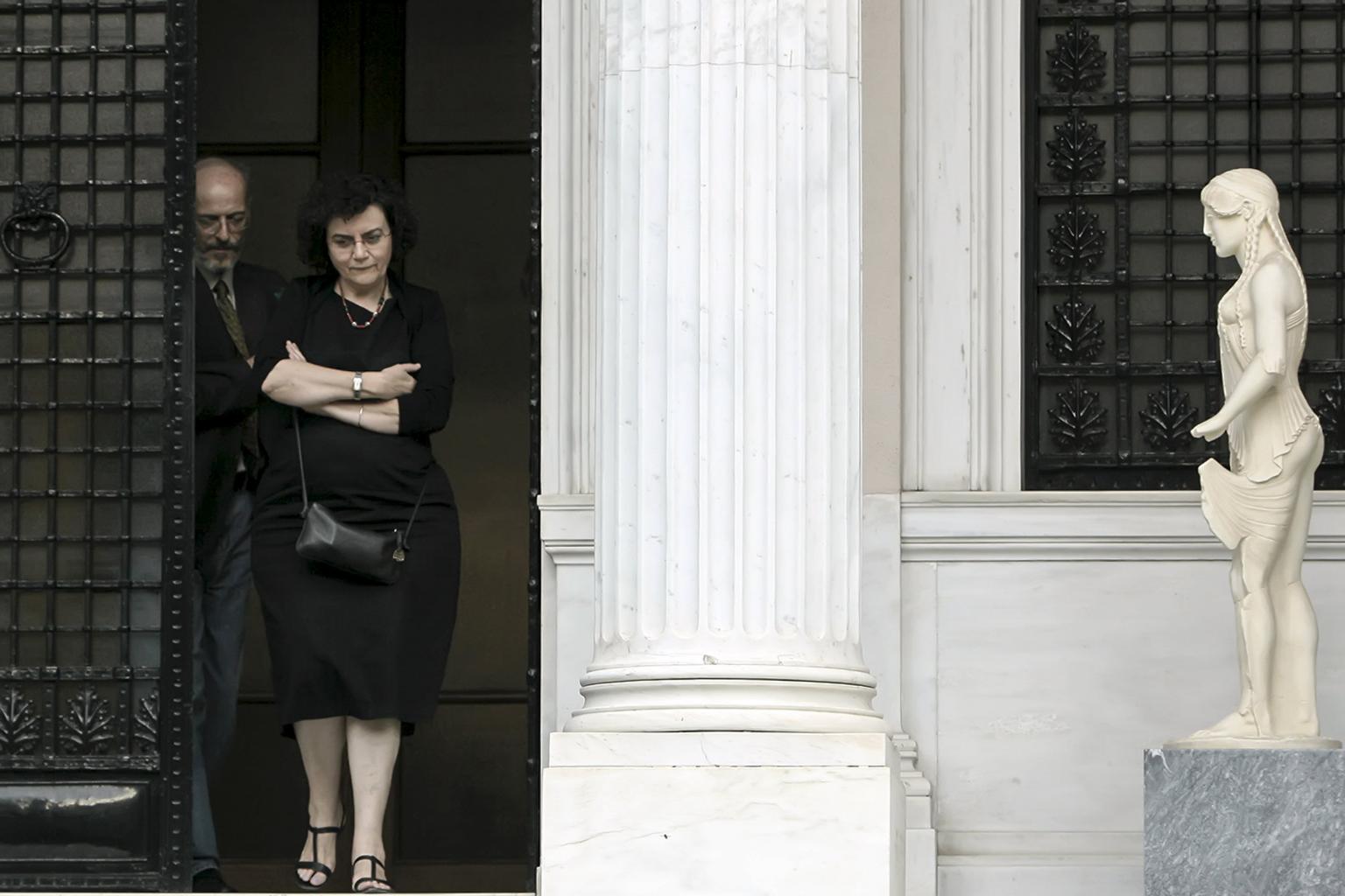 A file picture of Nadia Valavani leaving the Prime Minister's office at the Maximos Mansion in Athens, Greece June 30, 2015. Ms Valavani, one of Greece's two deputy finance ministers resigned from the leftwing government on Wednesday, ahead of a crucial vote on reforms demanded by the country's creditors in exchange for a third bailout. PHOTO: REUTERS