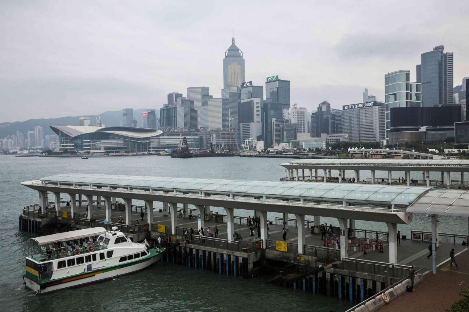 A passenger ferry (botton, left) is seen docking at Central pier in Hong Kong, on Nov 12, 2016.