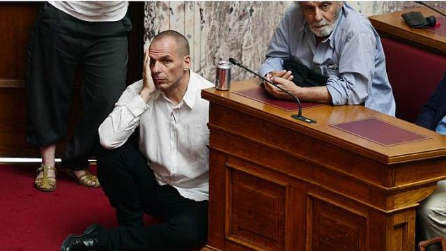 The picture that says it all? Greece's Finance Minister Yanis Varoufakis sitting on the floor with his head in his hands as he listens to Prime Minister Alexis Tsipras addressing Parliament in Athens.