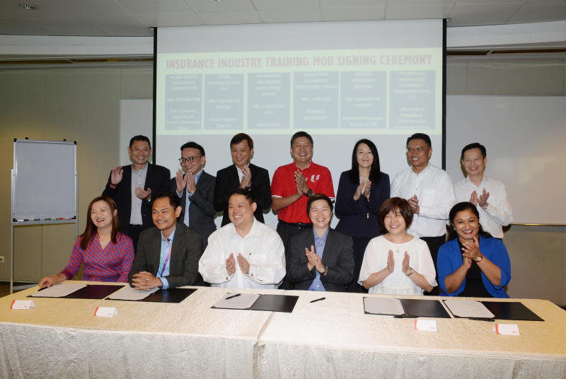 A total of 23 insurance companies signed an agreement with the Singapore Insurance Employees' Union (SIEU) on Tuesday (Oct 1) to work together on training initiatives for their staff.