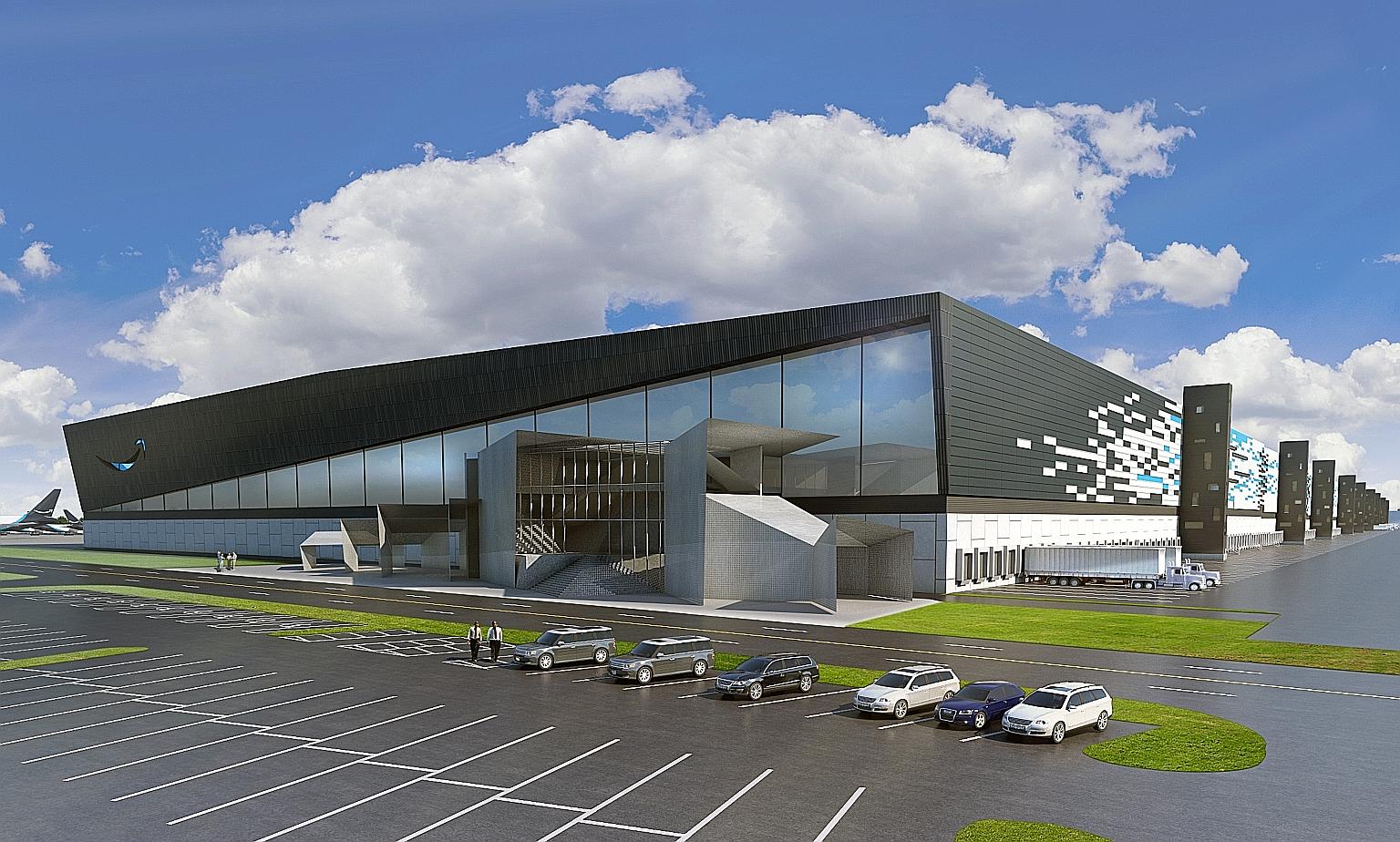 A rendering of Amazon Air's processing centre, which is scheduled to open this autumn, at the Cincinnati/Northern Kentucky International Airport in the United States. Amazon announced this month it was buying 11 Boeing 767-300 jets for its air cargo division, as the company cannot meet its one-and two-day shipping pledge to customers without an ever-expanding fleet of jets.
