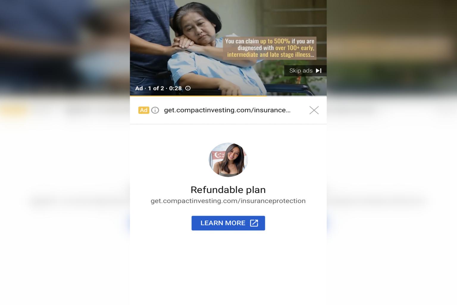 One ad widely available on YouTube offered critical illness cover with an extraordinary offer.