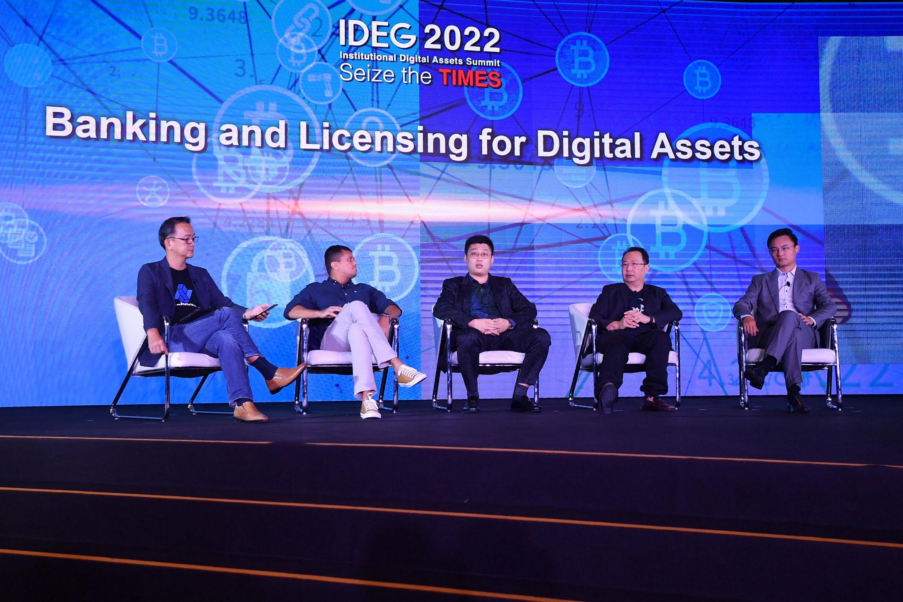 Crypto industry players and MAS spar on licensing and banking issues at the IDEG institutional digital assets summit.