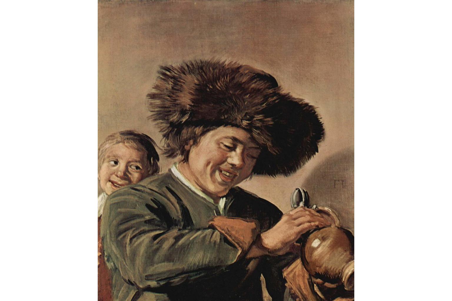 Painted for the open market, the appeal of the genre paintings was their freer brush strokes and joyful immediacy, like the two boys in the Leerdam work, one staring into a jug of beer. It was painted around 1628 when Hals was in his 40s.