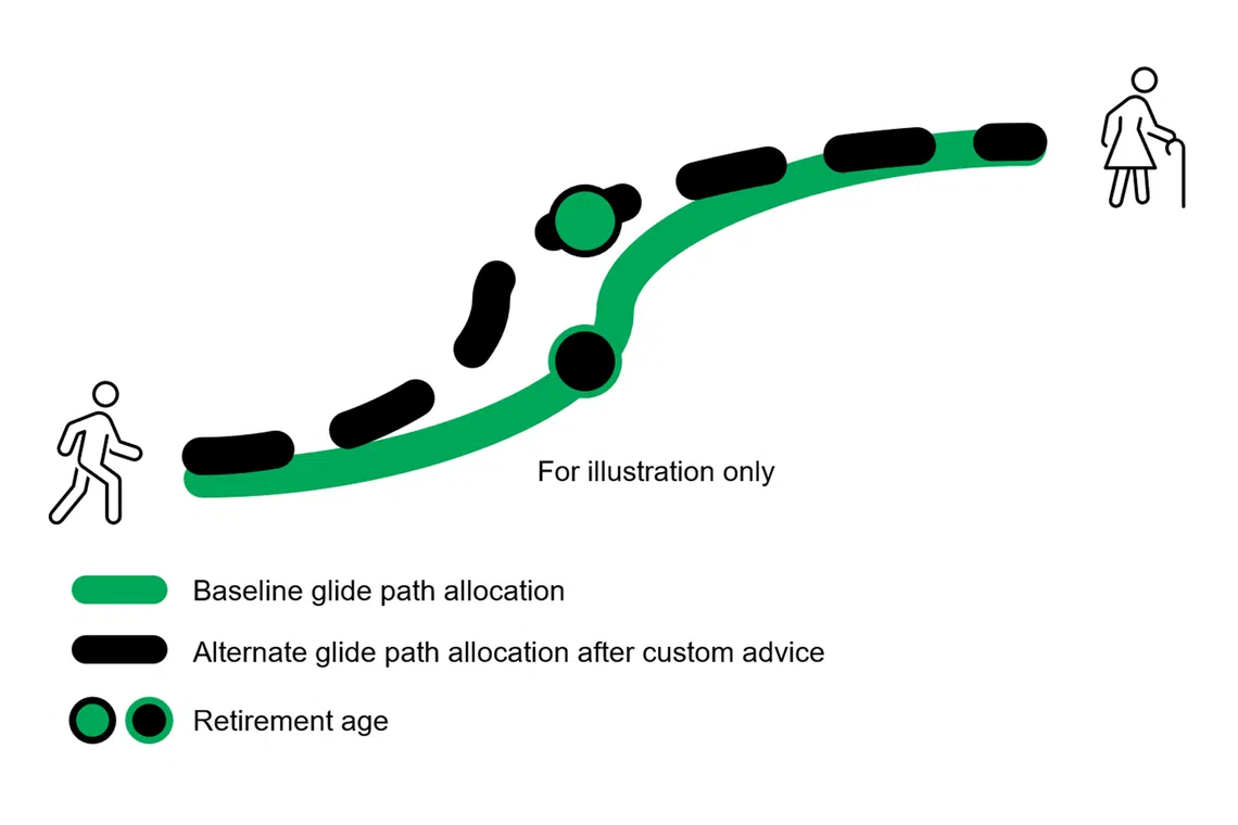 The second strategy allows for personalised asset allocation that deviates from the glide path to better align with an investor’s unique financial goals and circumstances.