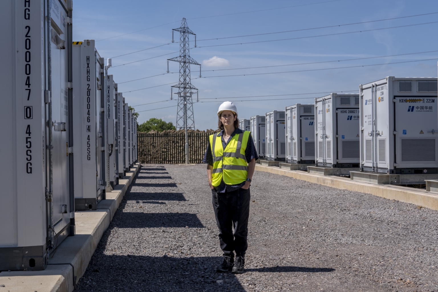 Ms Catherine Newman, chief executive of Limejump, at a battery installation in the village of Minety, England.