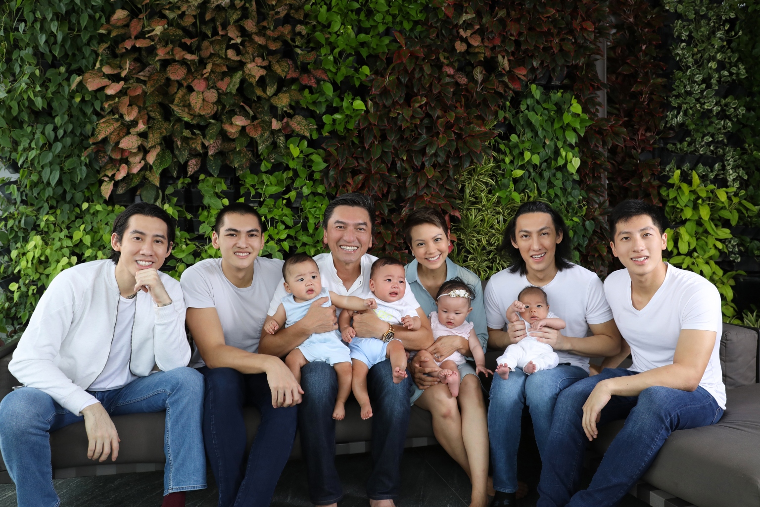Mr Finian Tan, 58, and his wife Fiona Goh, 40, with their eight children. The four older sons are aged between 18 and 32, with two currently doing their national service, and the four youngest are quadruplets under a year old.