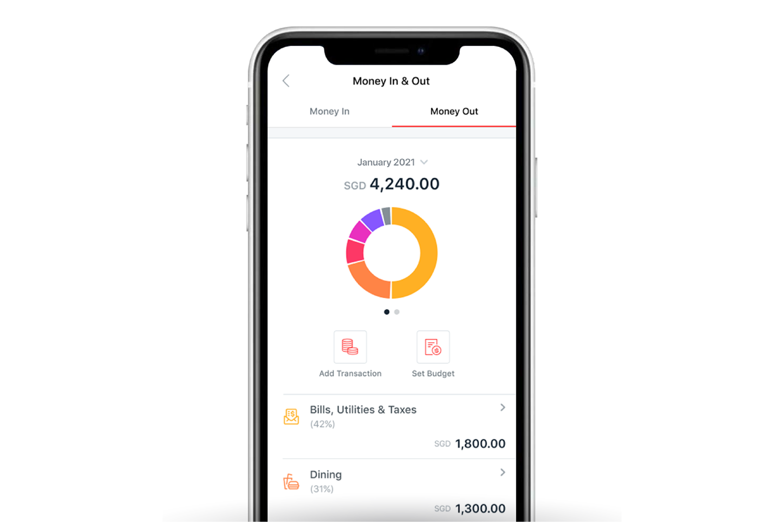 But put down that aspirin, my friend. Thanks to my 'Money In, Money Out' feature, you can now automatically track your spending and savings without manually typing your expenses. I can even give you deeper insights on your spending habits, so you can see what you can cut back on - you know, like that unused fifth pair of shoes you swore you needed. That's why 500,000 Singaporeans use my budgeting tools, and why 66 per cent of them now have positive cash flow.