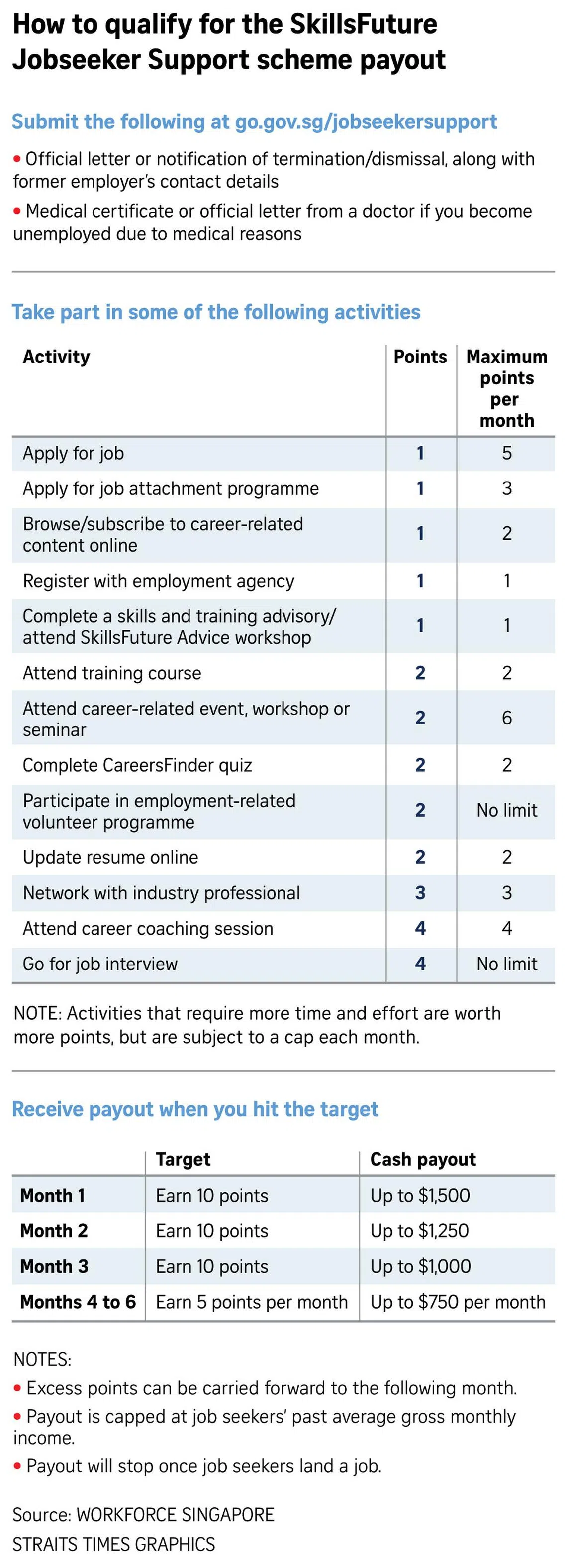To qualify for the scheme, job seekers aged 21 and above must have been unemployed for at least one month from the last day of employment before receiving the payout.