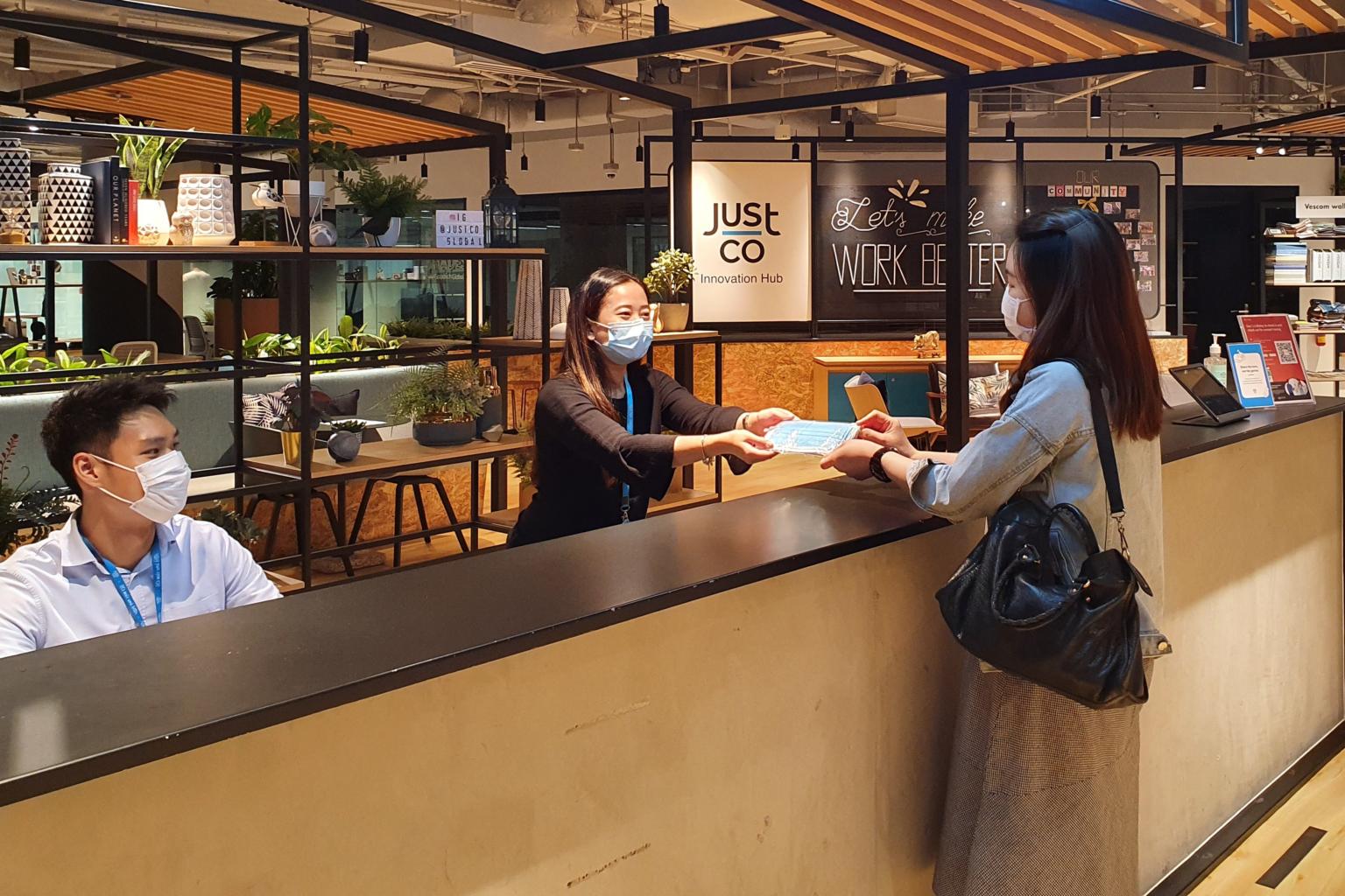 JustCo vice-president and head for Singapore and Indonesia Brandon Chia told The Straits Times that the opening of the OCBC Centre East and The Centrepoint workspaces were delayed by two to three months, due to the Covid-19 pandemic and government mandates for people to work from home.
