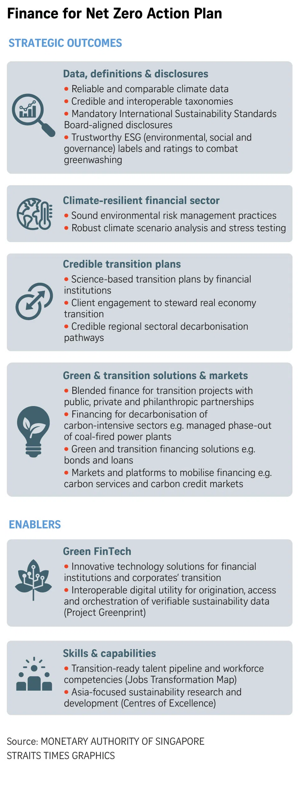 Among other things, MAS aims to build sound climate and environmental risk management practices with financial institutions and promote the adoption of credible transition plans, as well as facilitate financial innovation and catalyse credible green and transition solutions and markets.