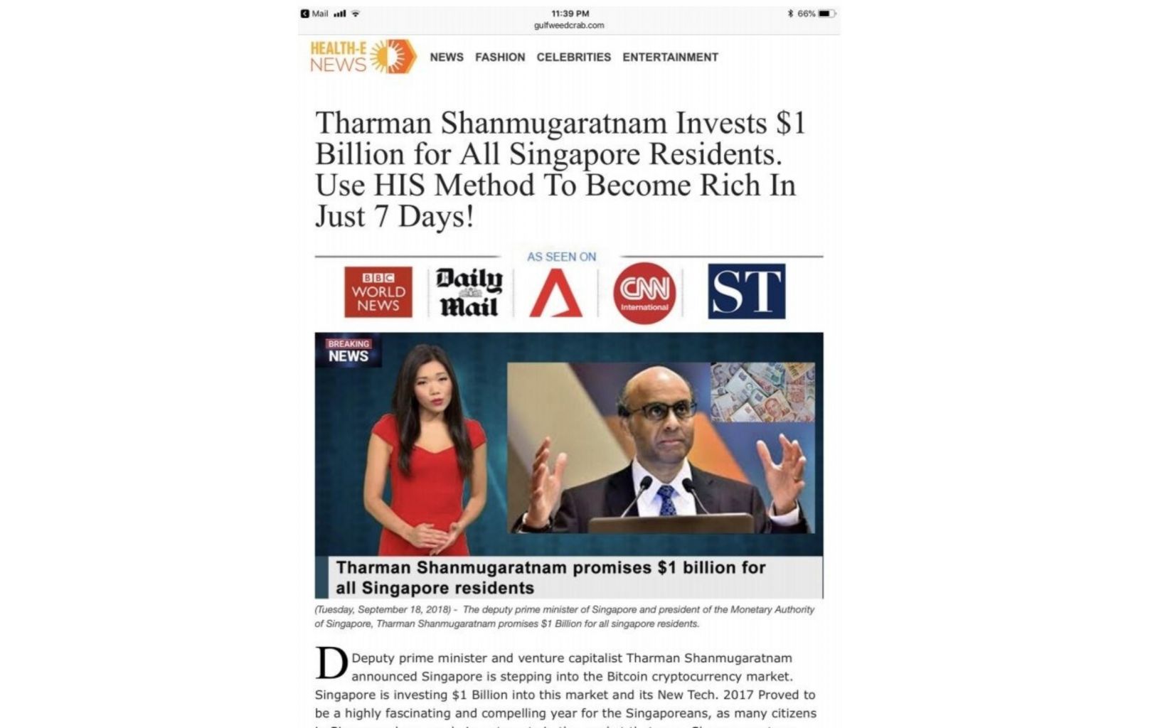 MAS warns of website using fake comments attributed to DPM Tharman to solicit bitcoin investments