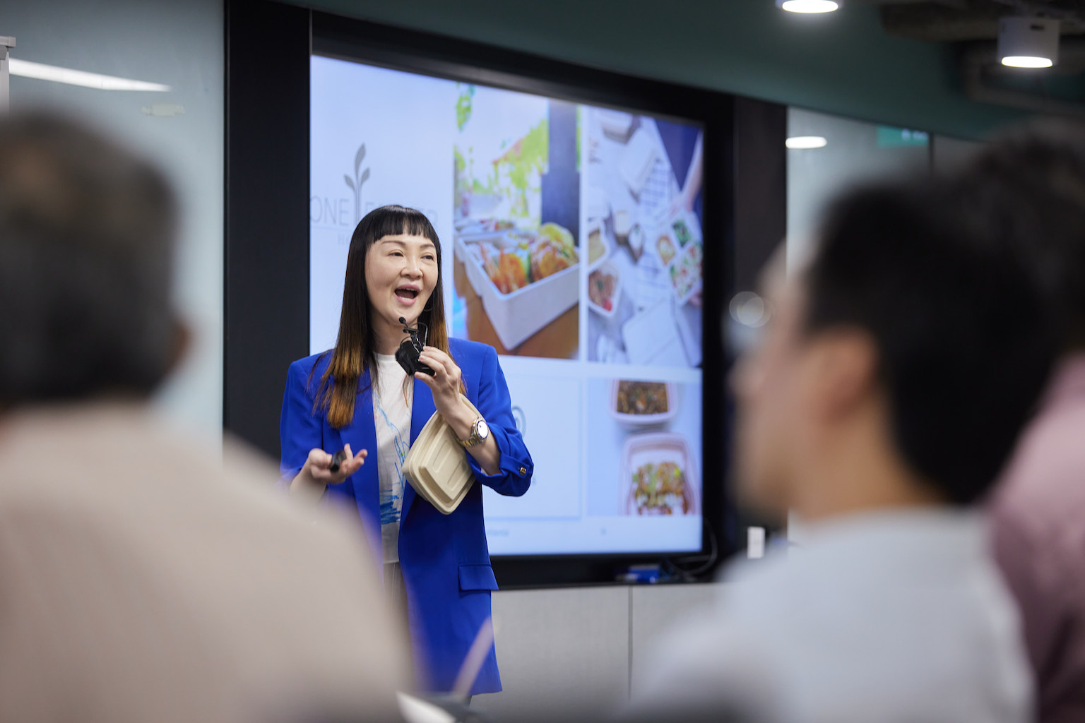 Alterpacks founder Karen Cheah sharing her sustainable packaging journey with business owners at UOB The FinLab’s Sustainability Innovation Programme in April 2023.