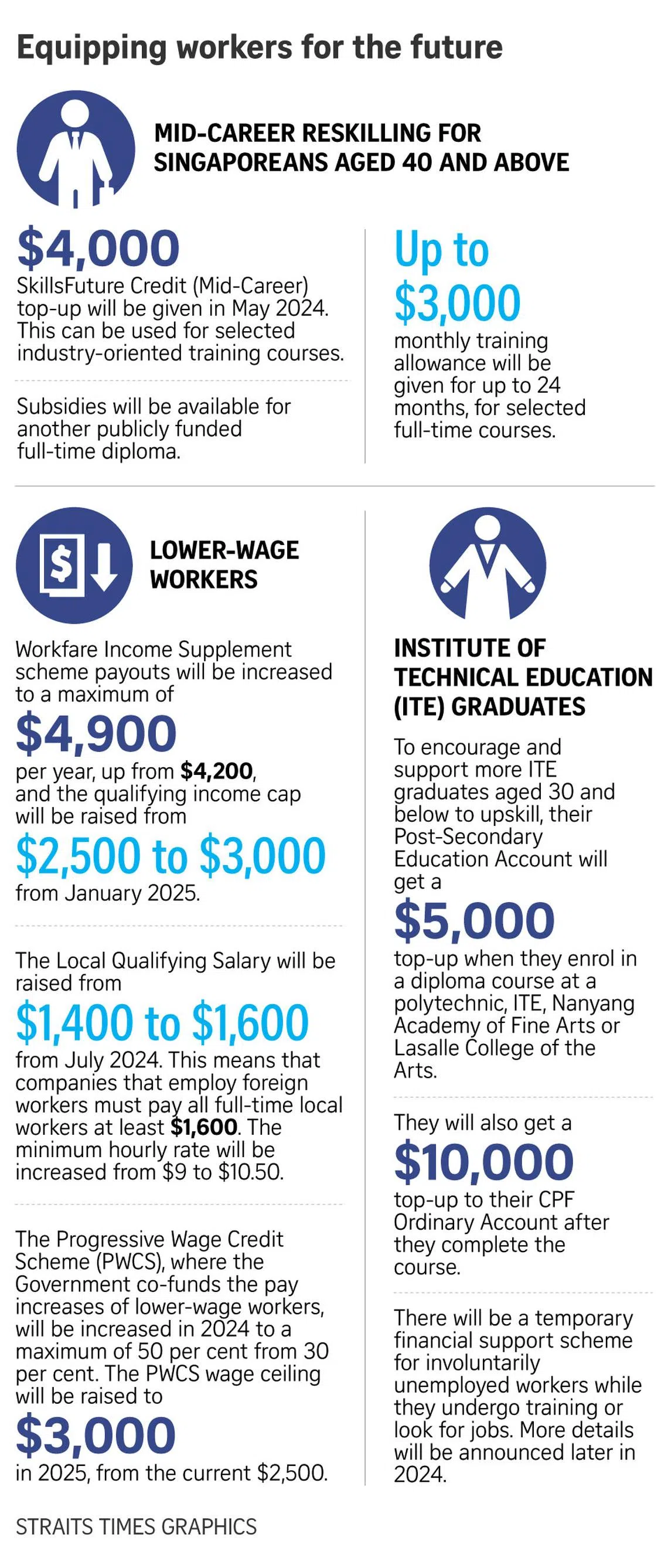All Singaporeans aged 40 and above will get a $4,000 top-up of SkillsFuture credits to encourage mid-career workers to refresh their skills.