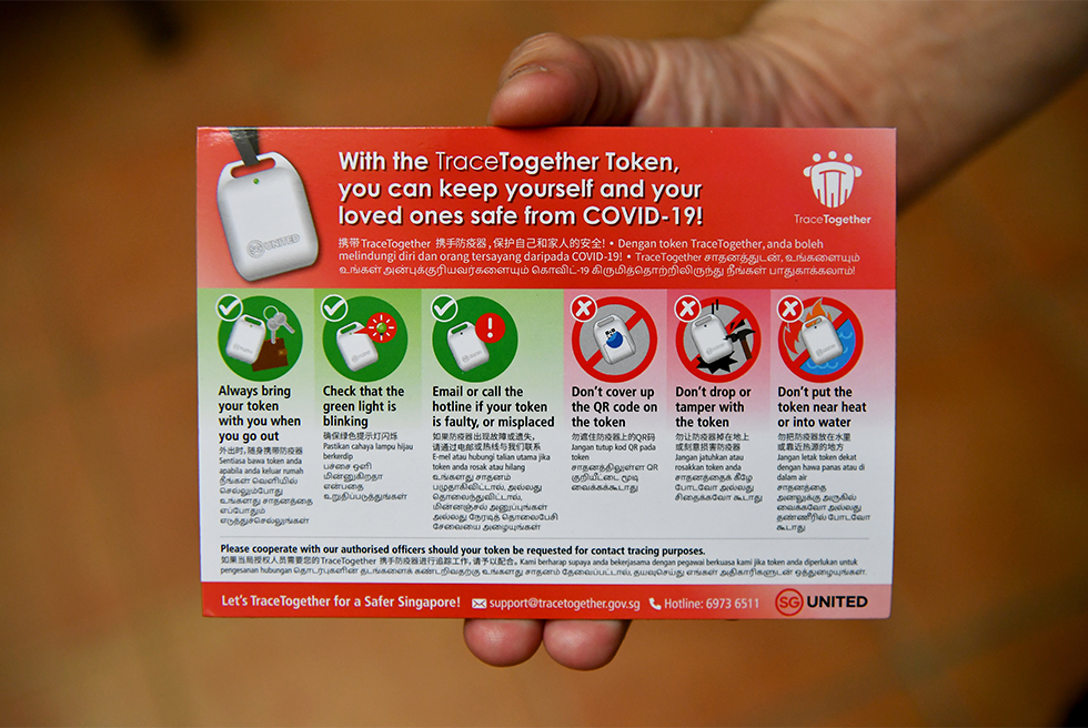 People are given a TraceTogether magnetic instruction guide when they collect the token at Yio Chu Kang Community Club on Oct 24, 2020.