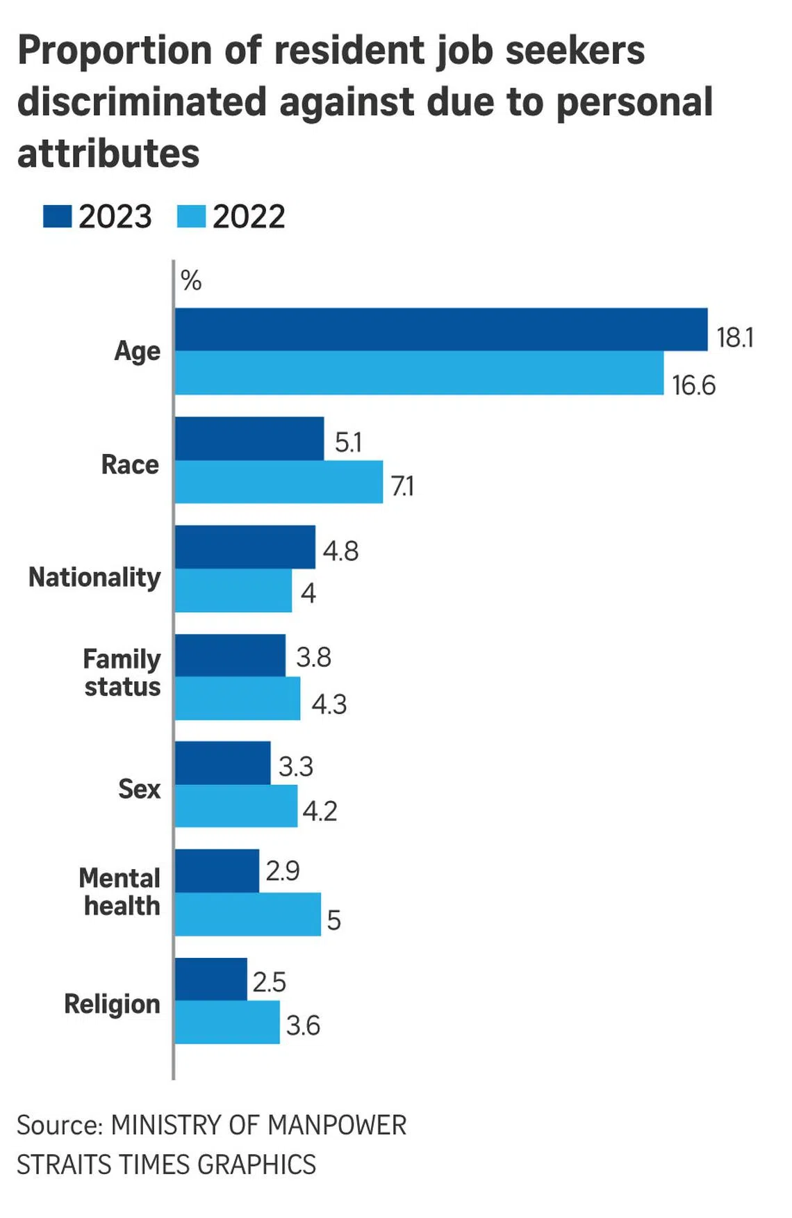 “The proportion of job seekers who faced discrimination due to their age during job search rose from 16.6 per cent in 2022 to 18.1 per cent in 2023,” said Mr Ang.