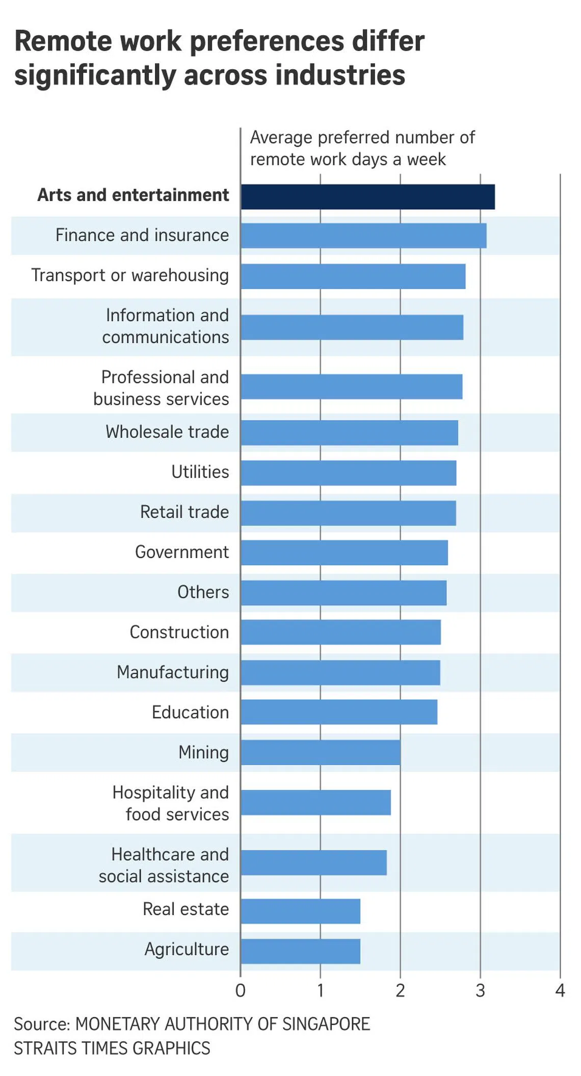 Mr Khan and Ms MacDonald’s article, titled Impact Of The Pandemic On Work From Home Trends And Singapore’s Labour Supply, stated that the rate of remote work has stabilised at around 20 per cent in Singapore, slightly above pre-Covid-19 pandemic levels.