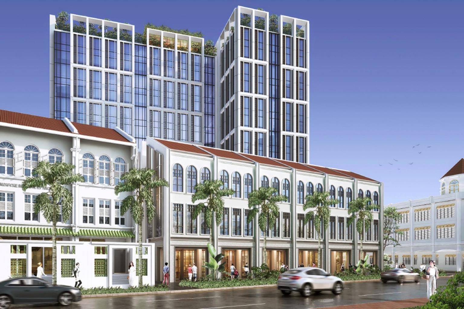 The hotel building will be a collaboration between DP Architects and Studio Carter. It is inspired by the historic architecture of Singapore's shophouses and will feature a contemporary tower as well as a rooftop pool and bar.