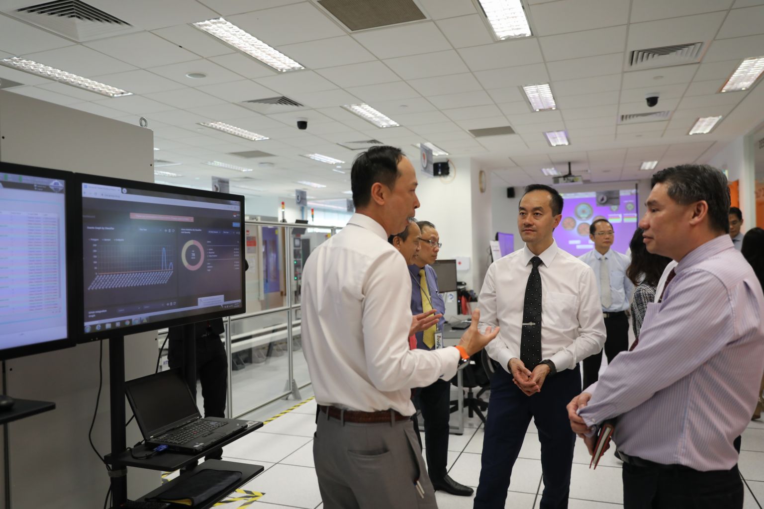 Senior Minister of State for Trade and Industry Koh Poh Koon (second from right) touring the Smart Manufacturing Living Lab.