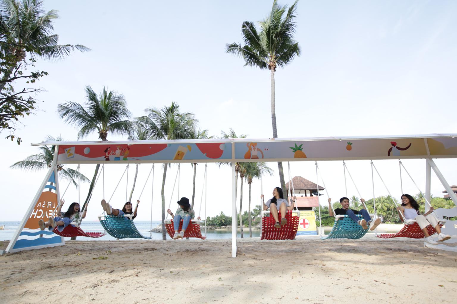 A 30m-long series of swings has been set up along Palawan Beach as part of the Make Time campaign to encourage locals to take breaks.