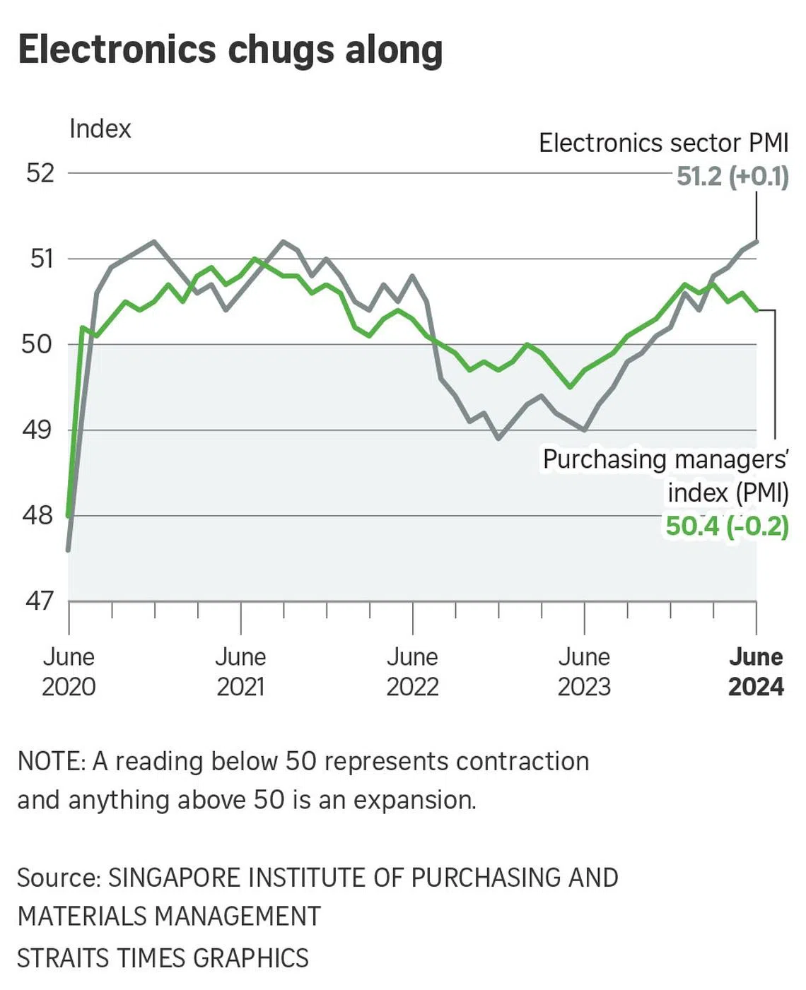 DBS economist Chua Han Teng said: “The performance of Singapore’s electronics cluster, which accounts for almost half of overall manufacturing production, will be key to the manufacturing recovery in 2024.” He noted that the electronics PMI was also at its highest since September 2021 and felt that this should negate concerns regarding the modest pullback in the latest headline factory gauge.