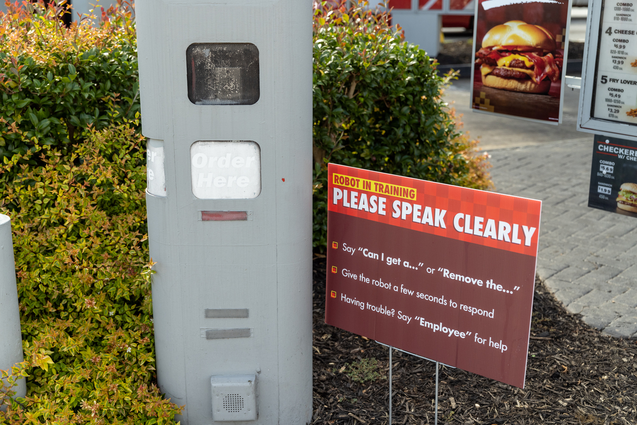 In the drive-thru lane at Checkers near Atlanta, requests for Big Buford burgers and Mother Cruncher chicken sandwiches may be fielded by a voice recognition algorithm.