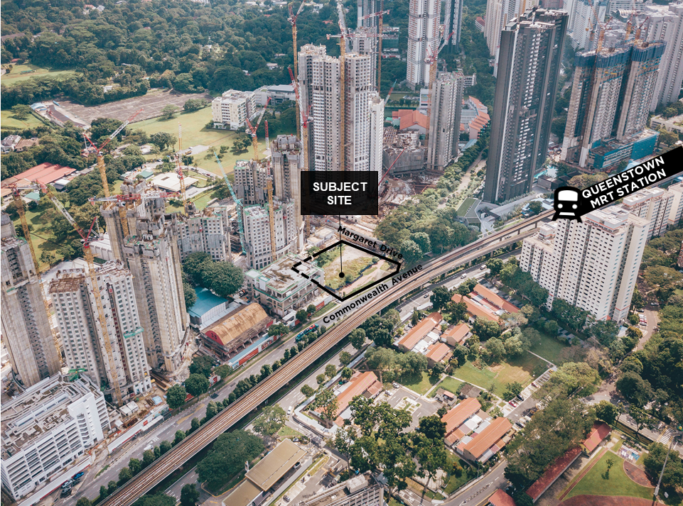 The vacant plot has a land area of 3,001.2 square metres (32,305 square feet) and a 99-year lease commencing from Jan 1, 1975. It is located at the corner of Commonwealth Avenue and Margaret Drive, about 300 metres from Queenstown MRT station.