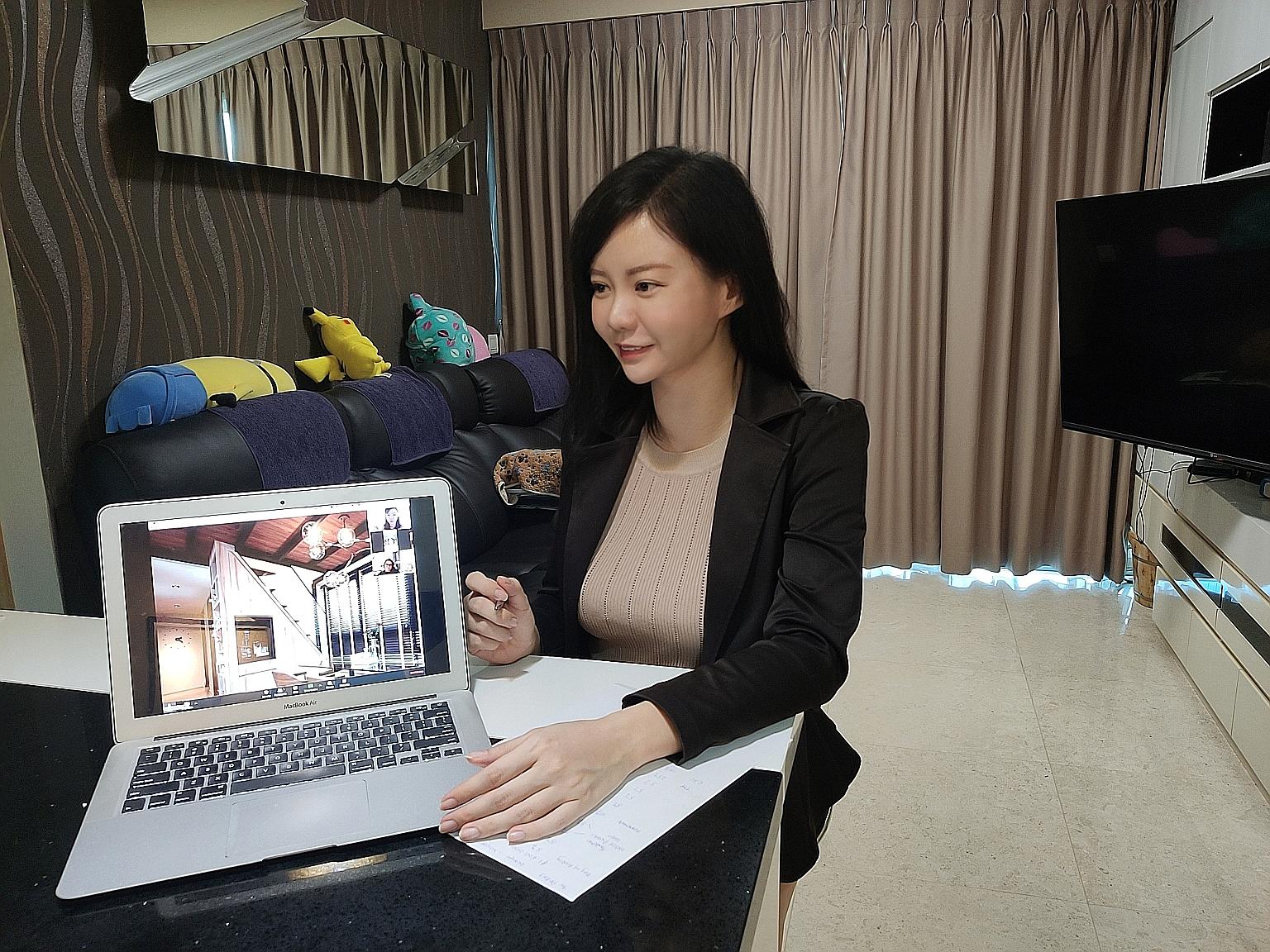 Huttons Asia property agent Charlyene Choo conducting a virtual viewing of a condo unit to a potential buyer in her home in May, during the circuit breaker period when physical viewings were disallowed.