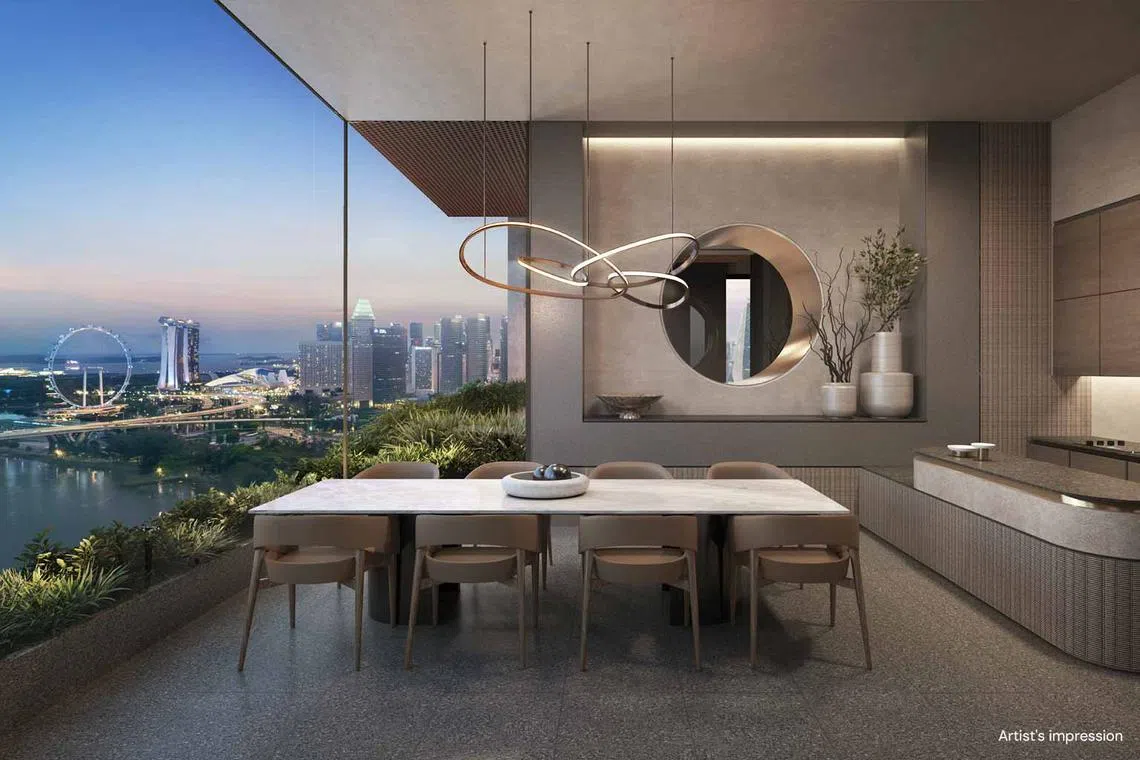 The Dining Room on level 17 offers unblocked panoramic views of Kallang Basin and Marina Bay. PHOTO: FAR EAST ORGANIZATION