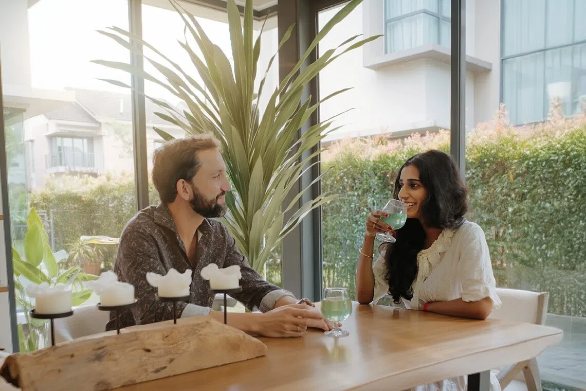 The couple’s four-bedroom semi-detached home in Residensi Bayou features dedicated work-from-home offices and yoga spaces, with interior design that blends Indian and European influences reflecting their cultural backgrounds.