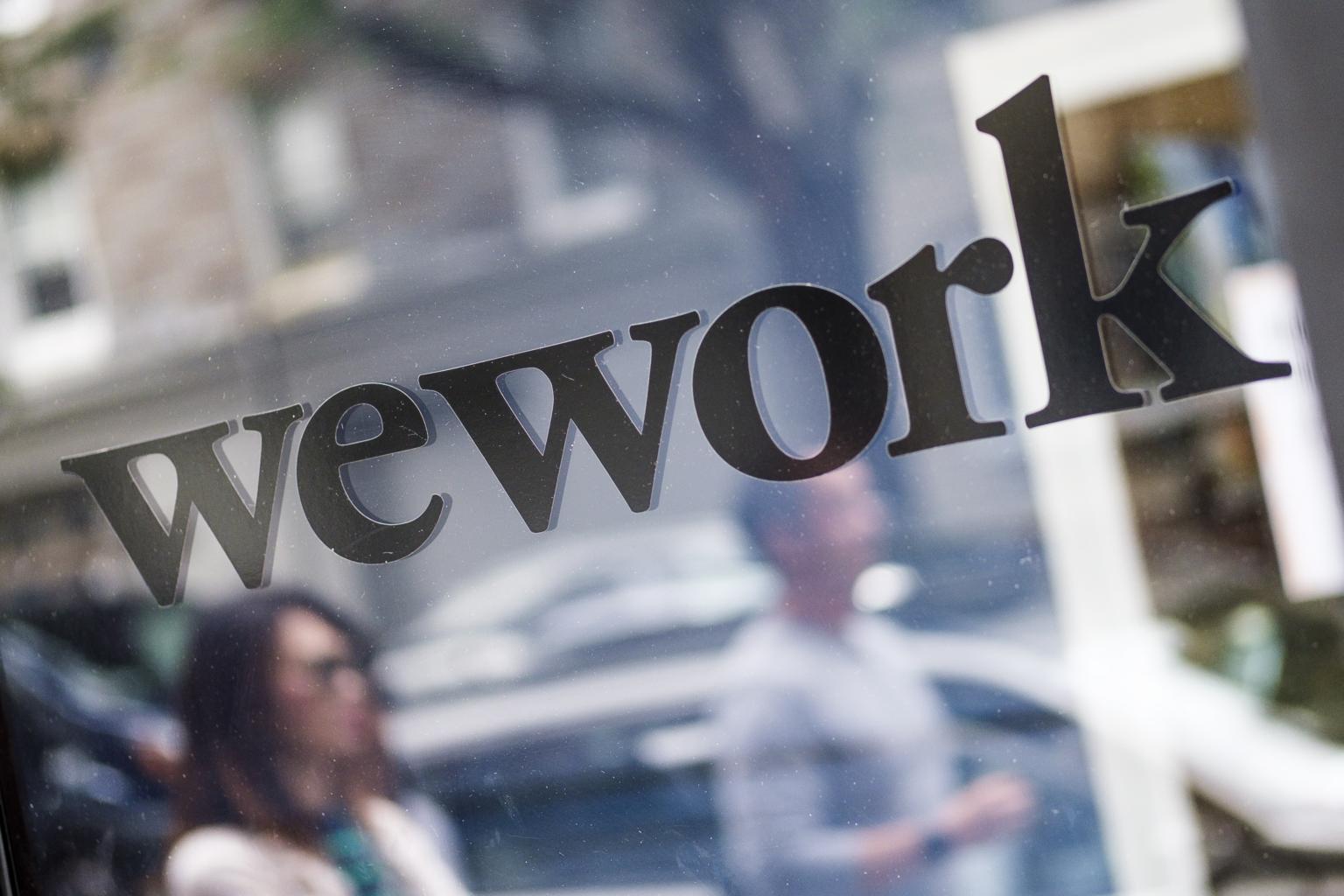 The WeWork logo seen at a co-working space in New York, on Sept 13, 2019.